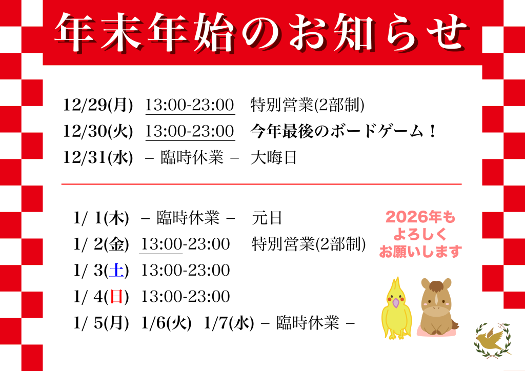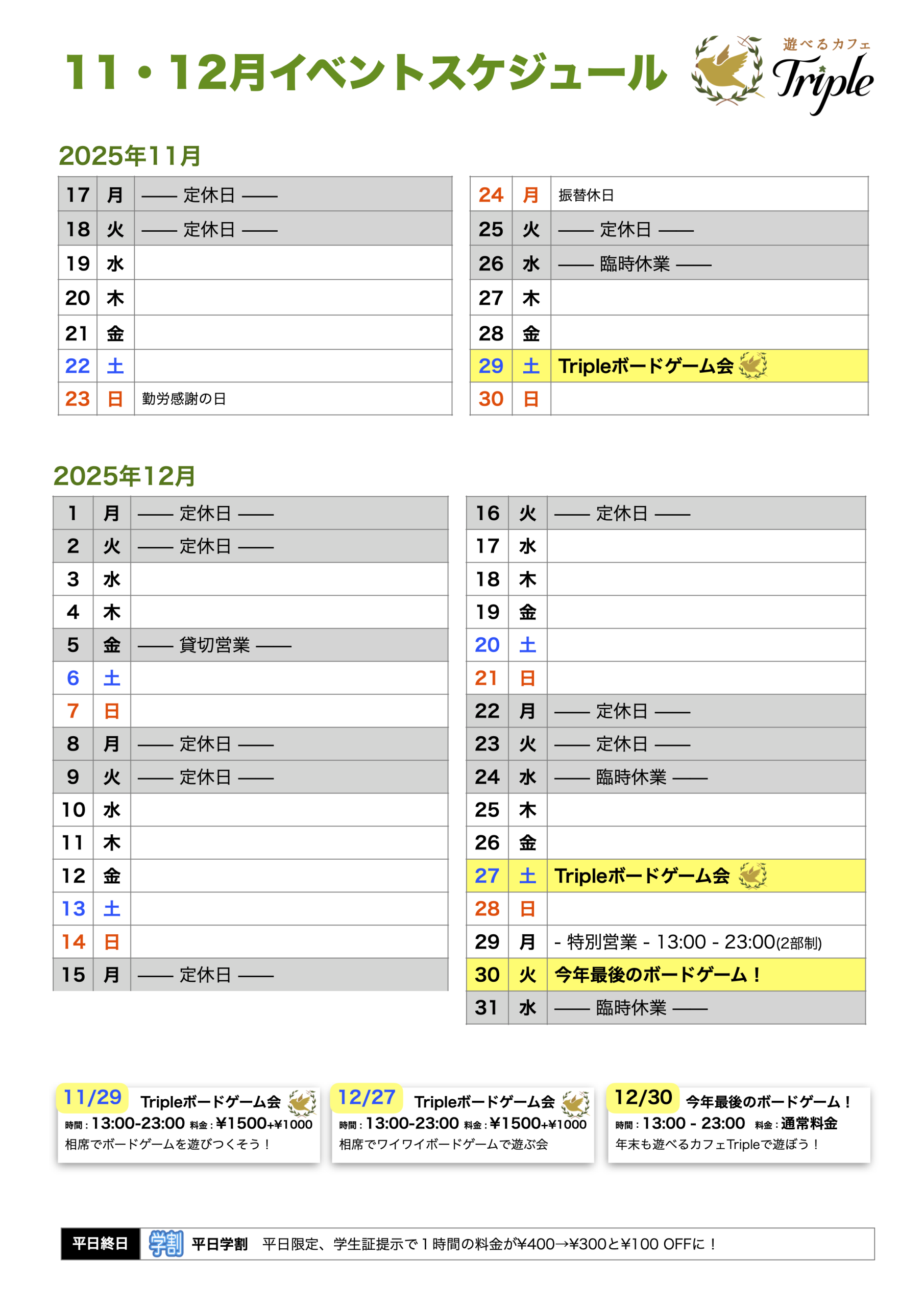 年末年始も遊べるカフェTripleをよろしくお願いいたします!