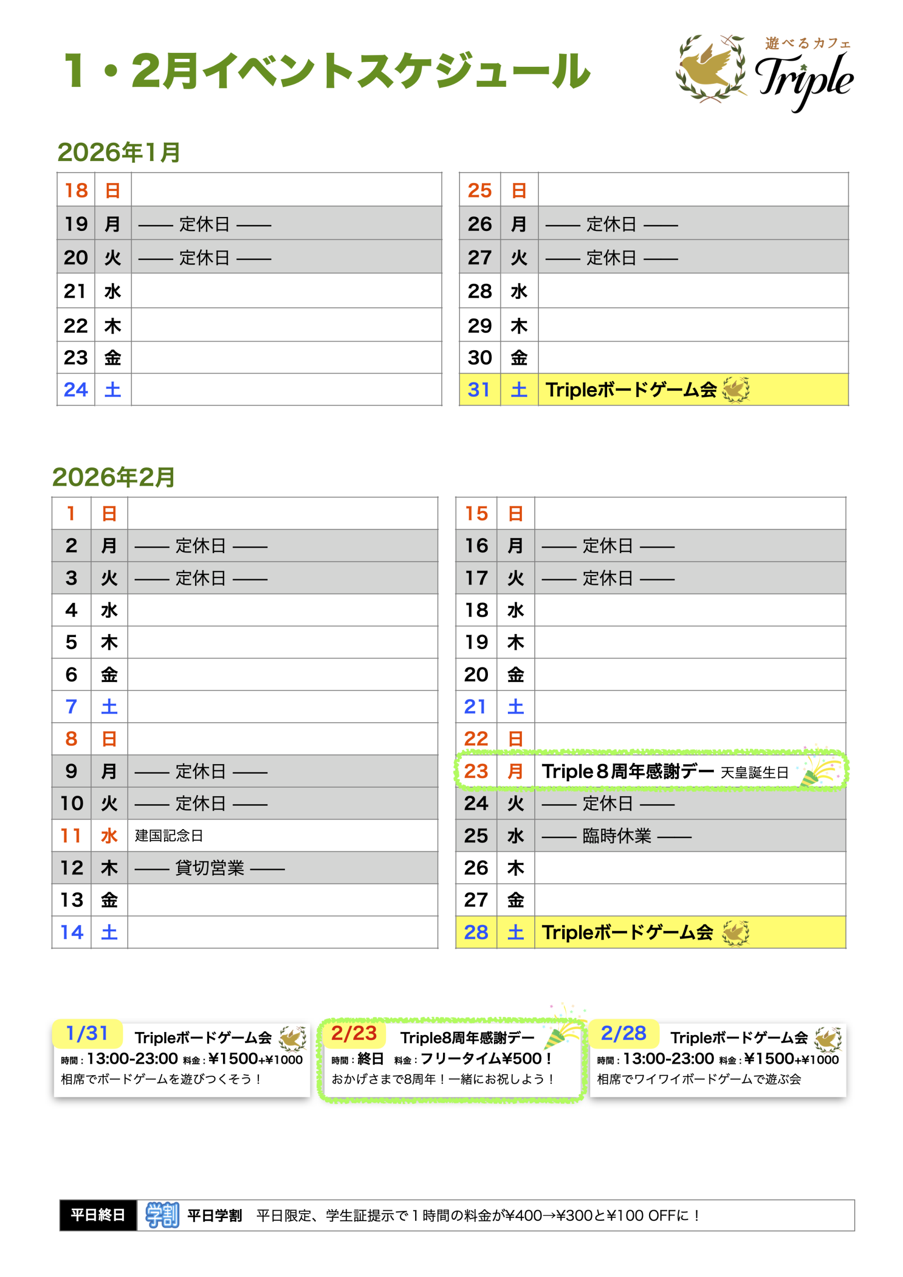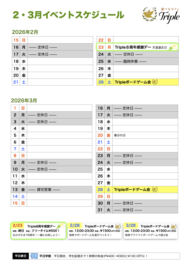 遊べるカフェTripleで楽しいひとときをお過ごしください